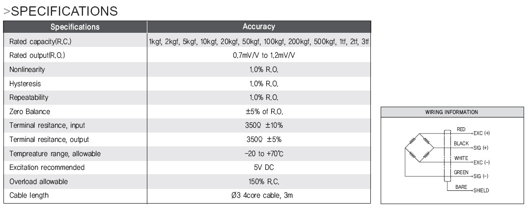 韩国Dacell称重传感器CMM,CMM2技术参数: