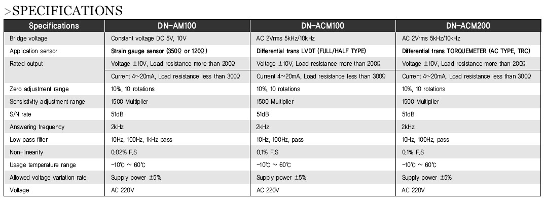 韩国Dacell放大器DN-AM100,ACM100,ACM200技术参数: